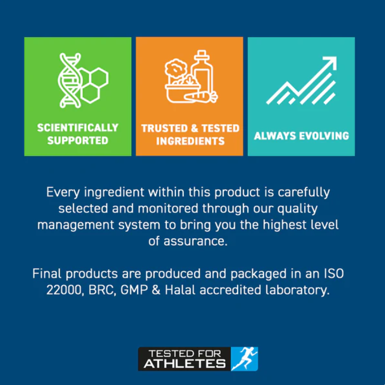 Every ingredient within this product is carefully selected and monitored through our quality management system to bring you the highest level of assurance. Final products are produced and packaged in an ISO 22000, BRC, GMP & Halal accredited laboratory.