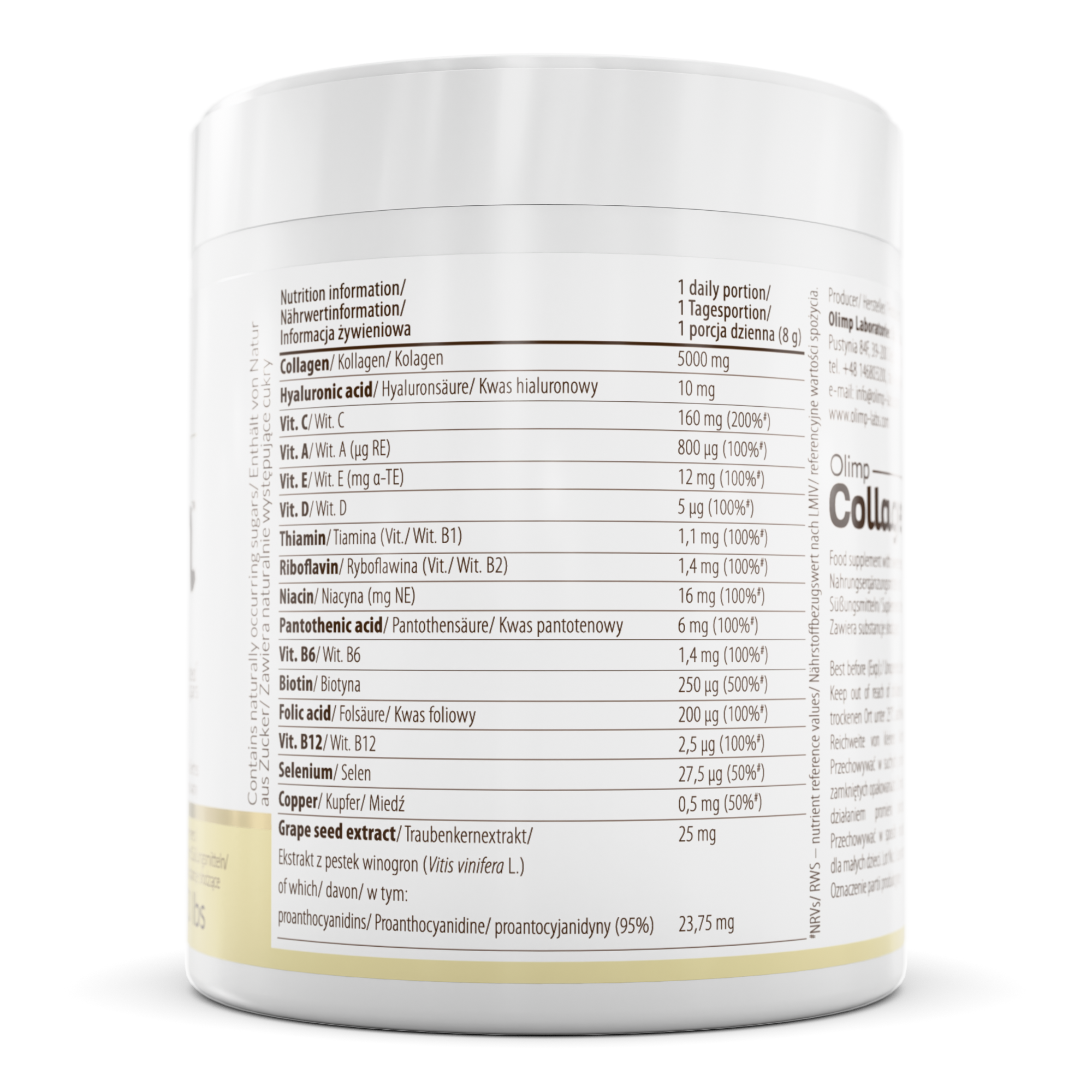 High Purity and Quality: Olimp Laboratories uses high-quality marine collagen, ensuring purity and potency.