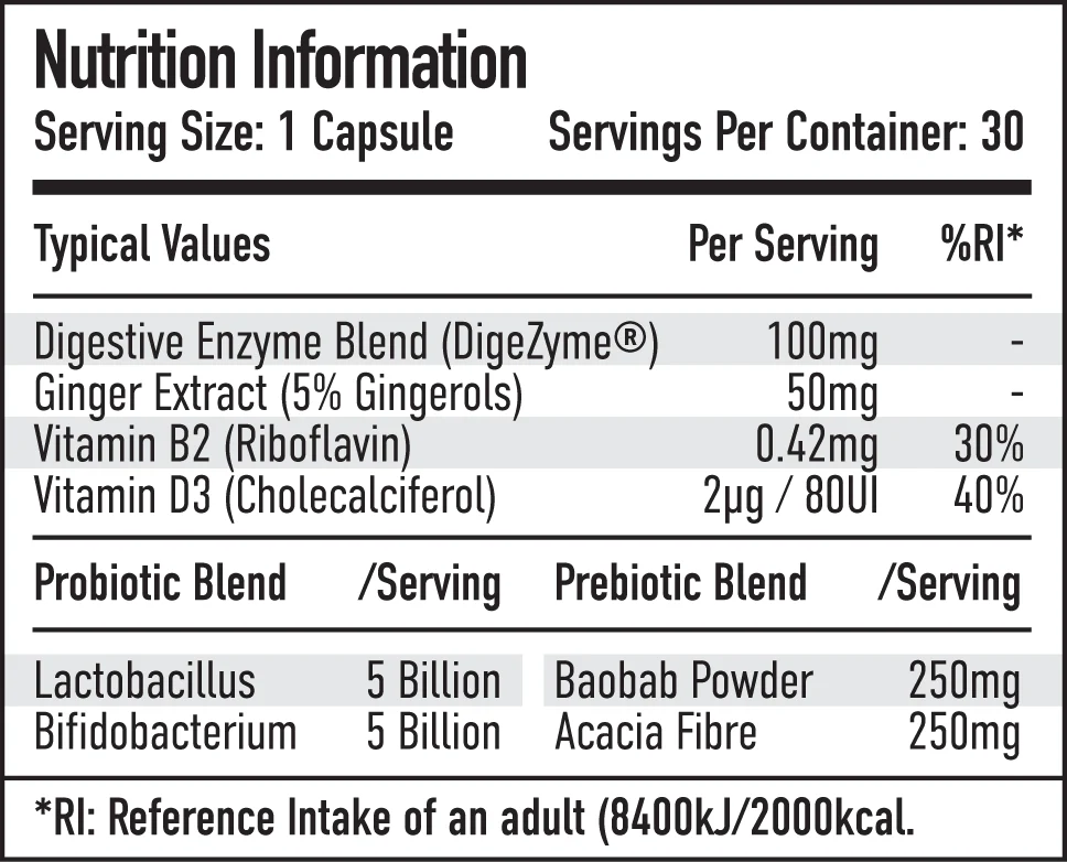 Optimises Digestive Efficiency: Helps your body break down and utilize macronutrients more effectively for better energy and recovery.