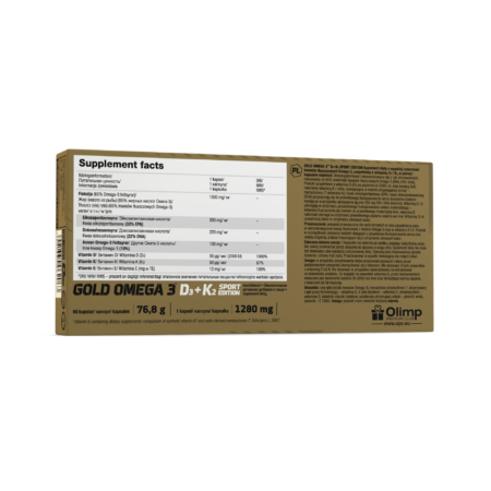 High Purity and Quality: Olimp Sport Nutrition adheres to strict quality control standards. Omega 3 D3+K2 Sport Edition is manufactured with high-quality ingredients and maintains its purity and potency.