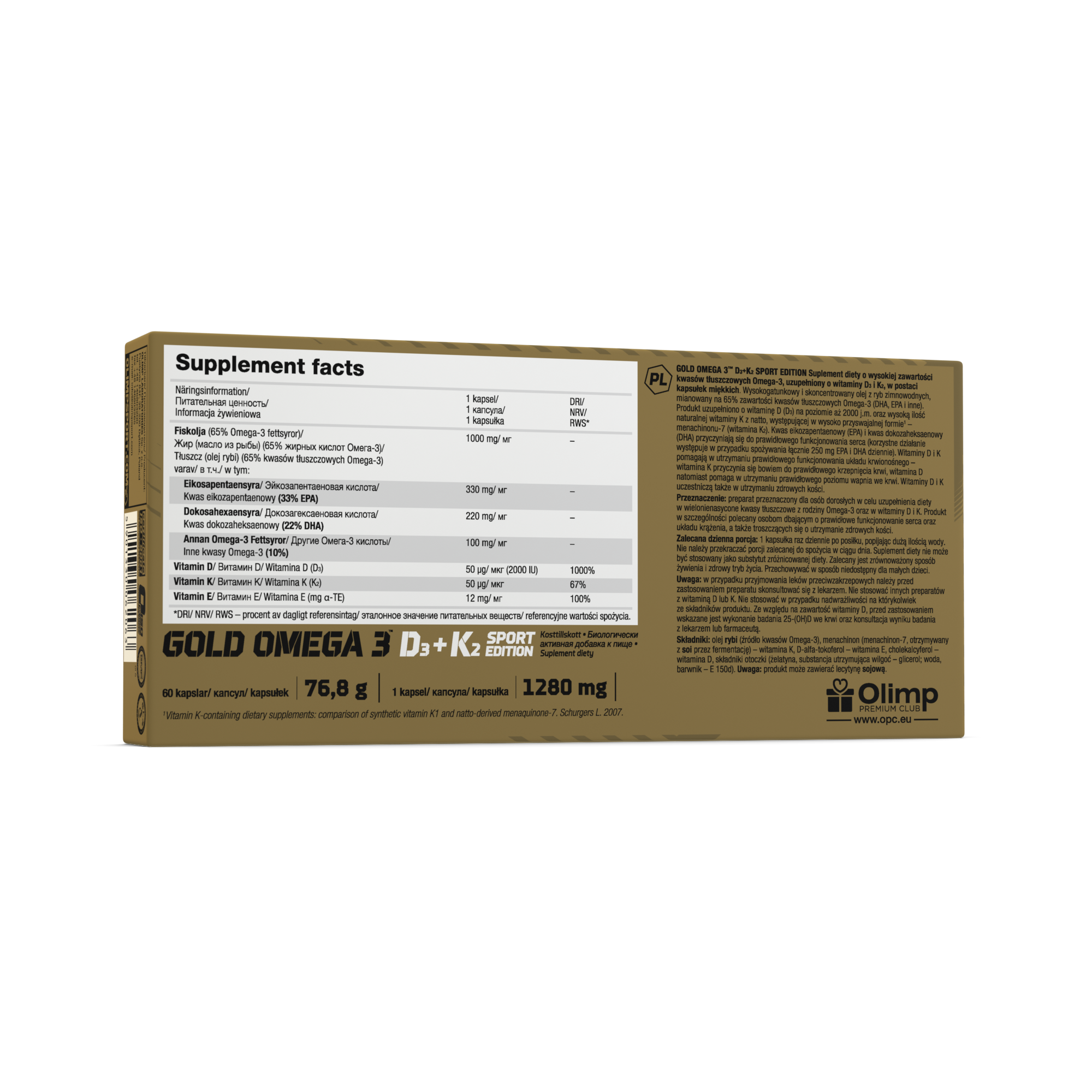 High Purity and Quality: Olimp Sport Nutrition adheres to strict quality control standards. Omega 3 D3+K2 Sport Edition is manufactured with high-quality ingredients and maintains its purity and potency.