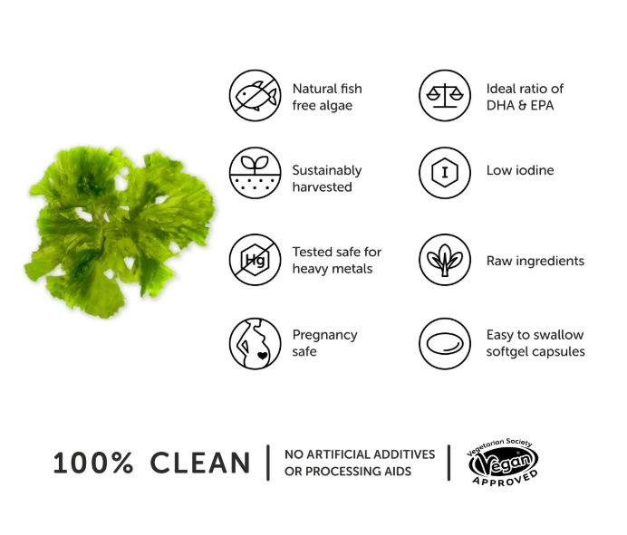 - Natural sustainable fish-free algae source
