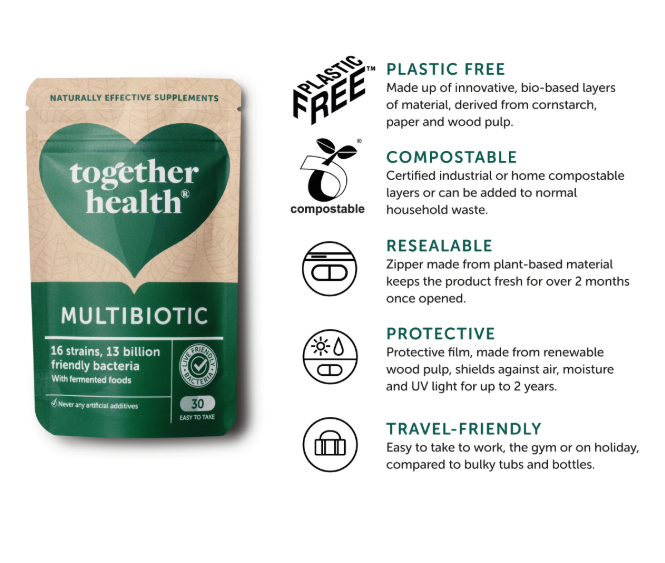 Together Health Multibiotic Capsules – Powerful all natural gut health supplement designed specifically to promote friendly bacteria growth. Vegan Friendly.