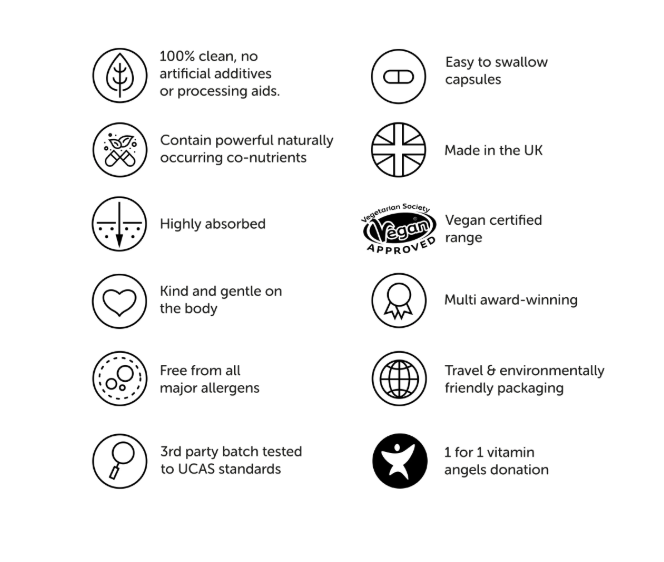 This fermented multibiotic comes from 36 farm-grown (and pesticide-free) fruits and vegetables. These are carefully fermented in a symbiotic co-culture of 11 strains of live bacteria, yeasts and acetic acid bacteria.