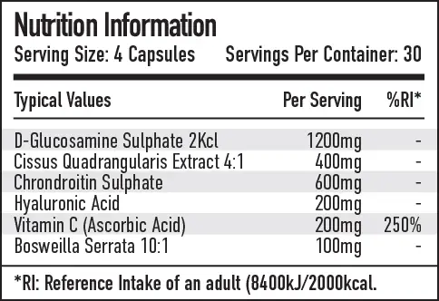Cartilage & Connective Tissue Support: The powerful duo of Glucosamine Sulphate and Chondroitin Sulphate are the primary building blocks of healthy cartilage.