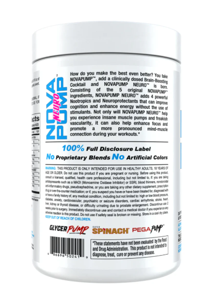 No Crash Formula: Say goodbye to post-workout crashes. NovaPump Neuro is carefully formulated to provide a smooth energy curve without the jitters or energy crashes commonly associated with other pre-workouts.