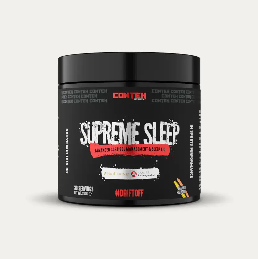 Introducing Conteh Sports Supreme Sleep, an advanced, scientifically-formulated sleep aid and cortisol management supplement meticulously crafted to help you achieve the deep, uninterrupted, and restorative sleep your body desperately needs to thrive.
