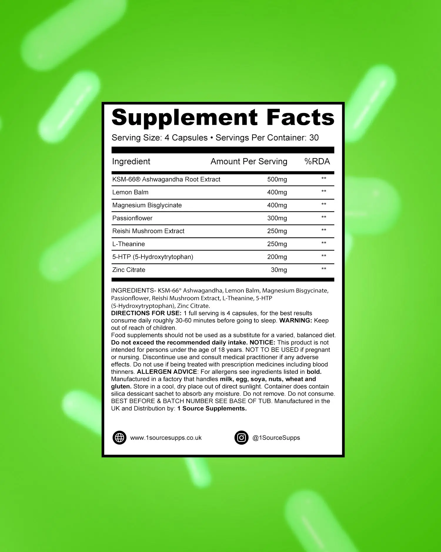 1Source believe in full transparency, which is this our formula is non-proprietary and every active ingredient is dosed to work in harmony: