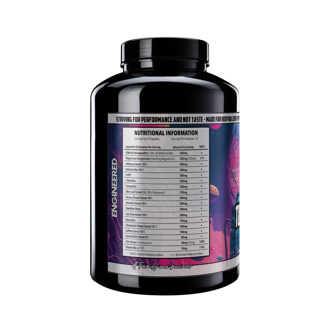 Engineered Muscle TurboDreamzzz is a meticulously crafted, all-in-one sleep and recovery supplement that goes far beyond a simple sedative.