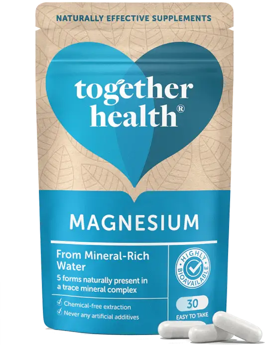 This magnesium supplement is complete. It contains all 5 natural forms of magnesium: oxide, Hydroxide, sulfate, carbonate and chloride. Our bodies can easily recognise minerals when they’re taken from natural sources rather than synthetically created, so that’s exactly what Together Health have done.