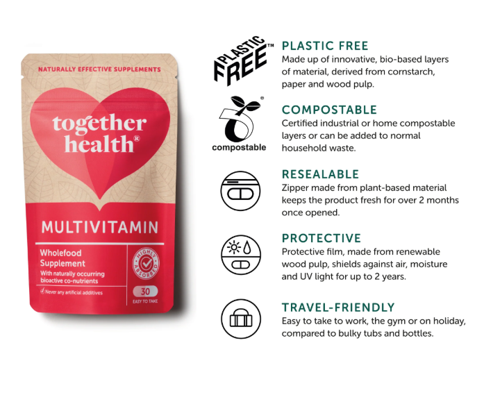 Together Health Multivitamin – Naturally effective ingredients. This General purpose, daily Multivitamin is made from whole foods, ocean sourced and plant-based ingredients.