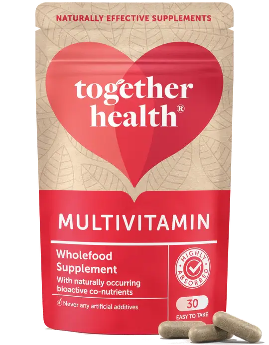 Together Health Multivitamin – Naturally effective ingredients. This General purpose, daily Multivitamin is made from whole foods, ocean sourced and plant-based ingredients.
