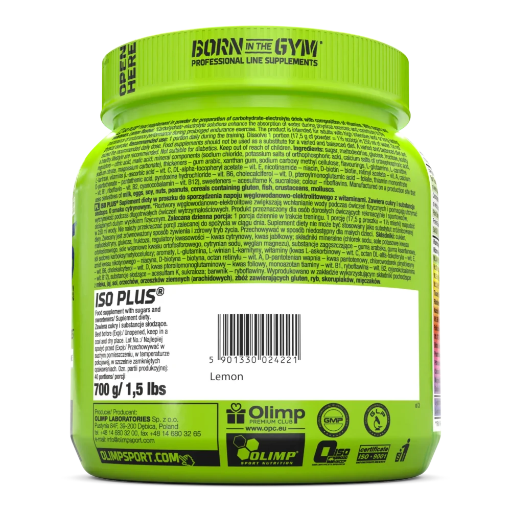 Fuel your performance and optimize recovery with Olimp Sport ISO PLUS Powder, a premium isotonic sports drink designed to replenish electrolytes, carbohydrates, and fluids lost during intense training.