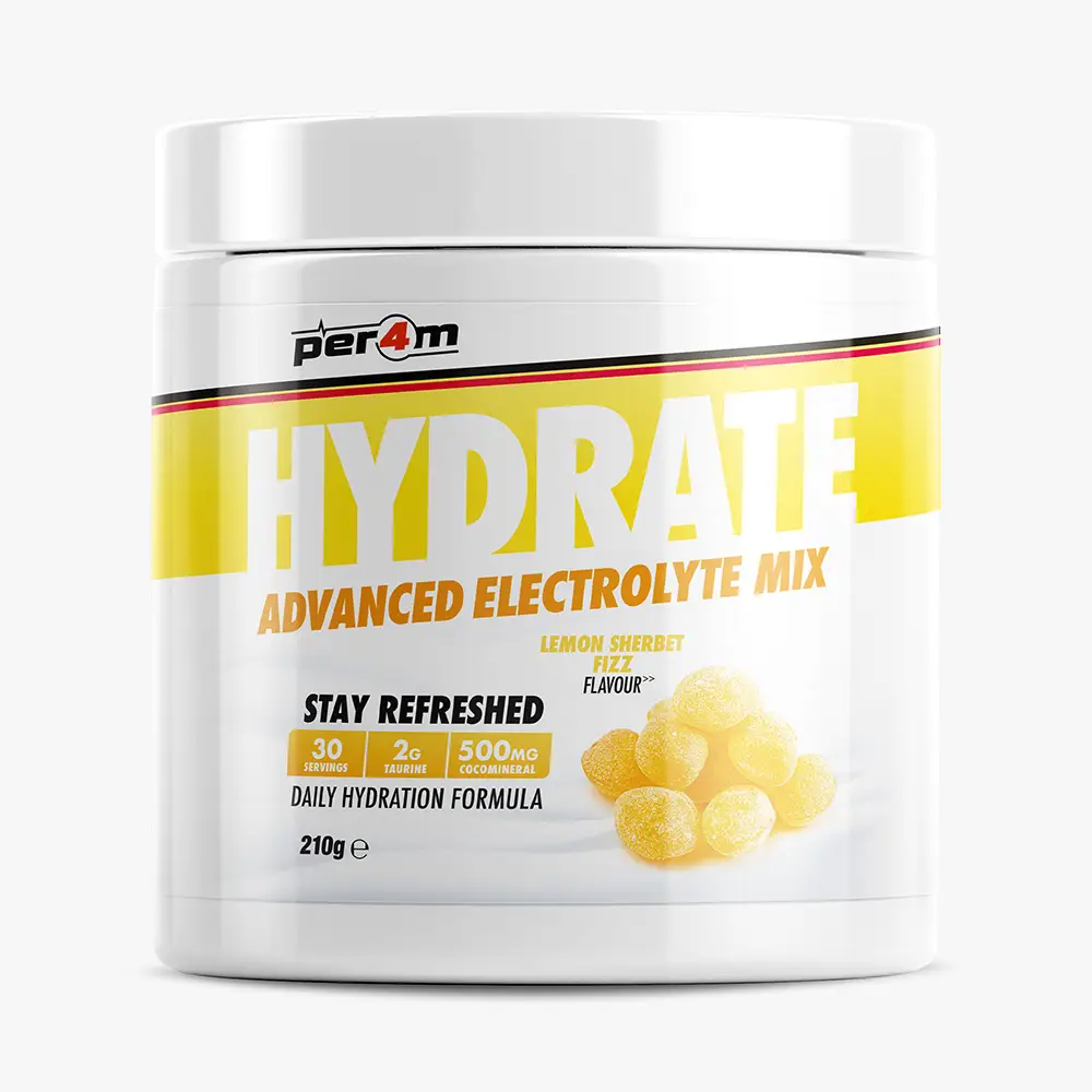 Per4m Hydrate is your ultimate defence, delivering a scientifically backed formula that goes far beyond basic hydration to unlock new levels of endurance, power, and recovery.