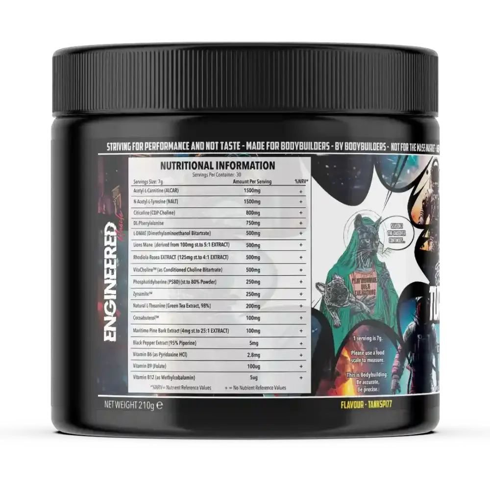 Engineered Muscle’s Fully Stacked, 100% Extreme Focus Pre-Workout Blend is crafted to boost mental clarity and concentration without the need for flavours, sweeteners, or caffeine.