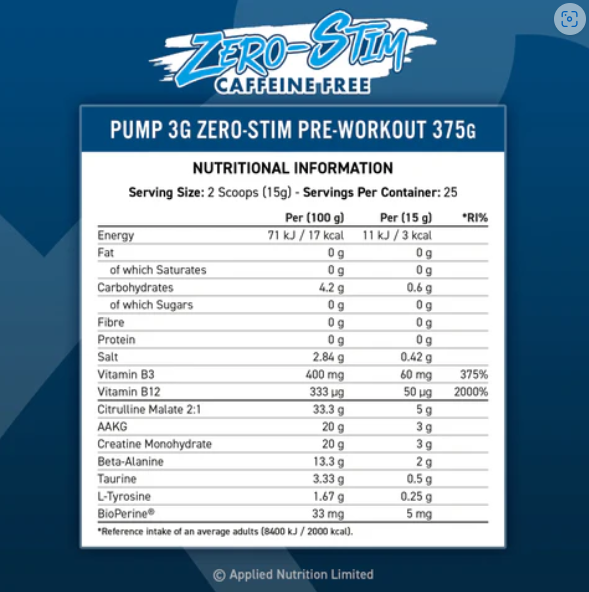 Applied Nutrition Pump 3G. This is the Stimulant Free version of Pump 3G, now more concentrated than ever, stacked with a host of the most popular and researched ingredients to help improve pump, focus and performance.