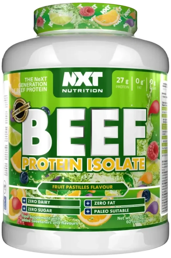 Introducing NXT Beef Protein Isolate, a revolutionary supplement that harnesses the muscle-building power of beef without the fat, cholesterol, or digestive issues associated with dairy-based proteins.