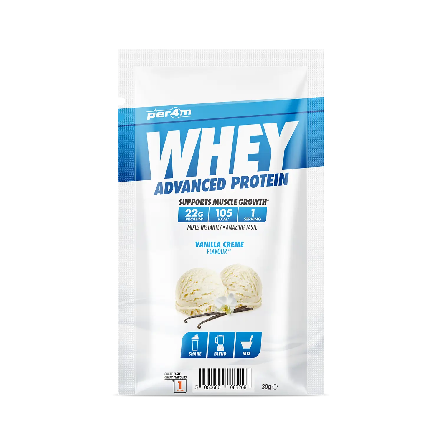 These samples allow you to taste-test Per4m’s premium whey protein, ensuring you discover the flavours you love before committing to a larger purchase.