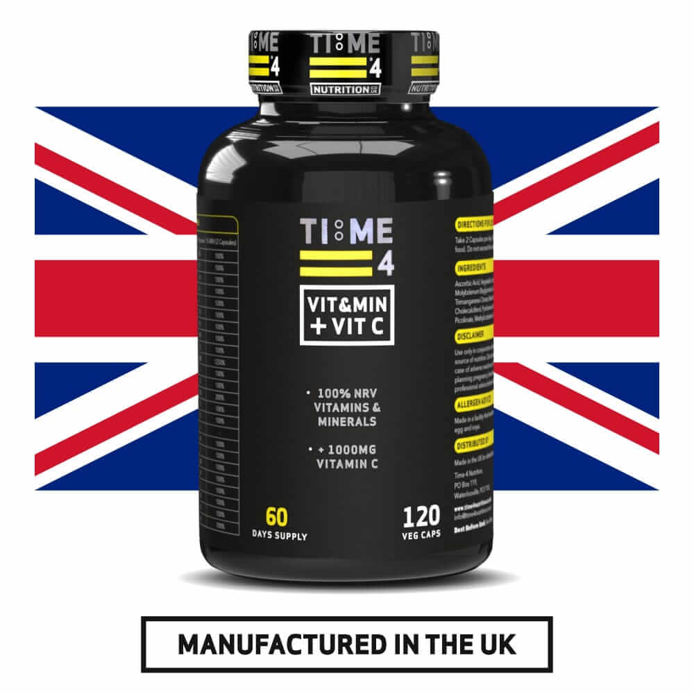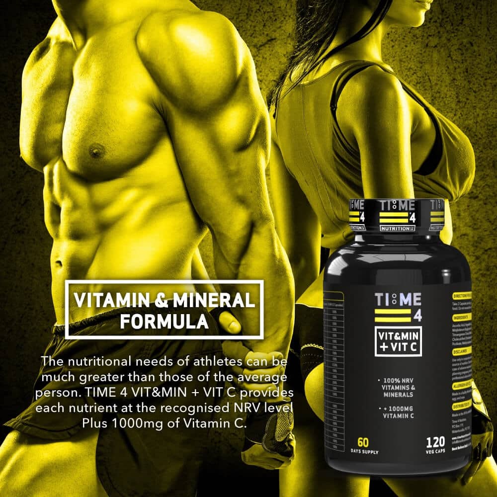 Fortify Your Health and Performance with Time 4 Nutrition Vit & Min + Vit C: Comprehensive Micronutrient Support with a Powerful Vitamin C Boost.