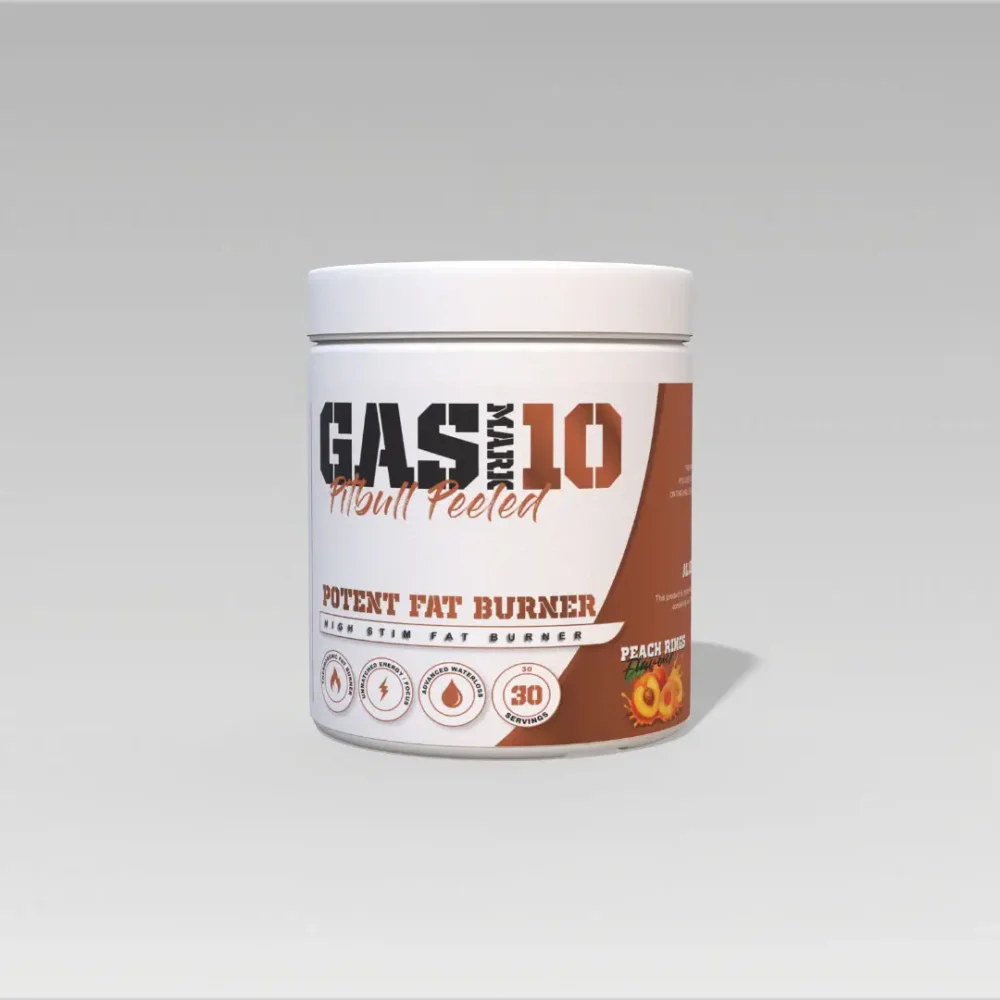 Gas Mark 10 Pitbull Peeled is the ultimate, fully-loaded thermogenic fat burner and high-stimulant pre-cardio formula engineered for those serious about getting shredded, defined, and peeled.