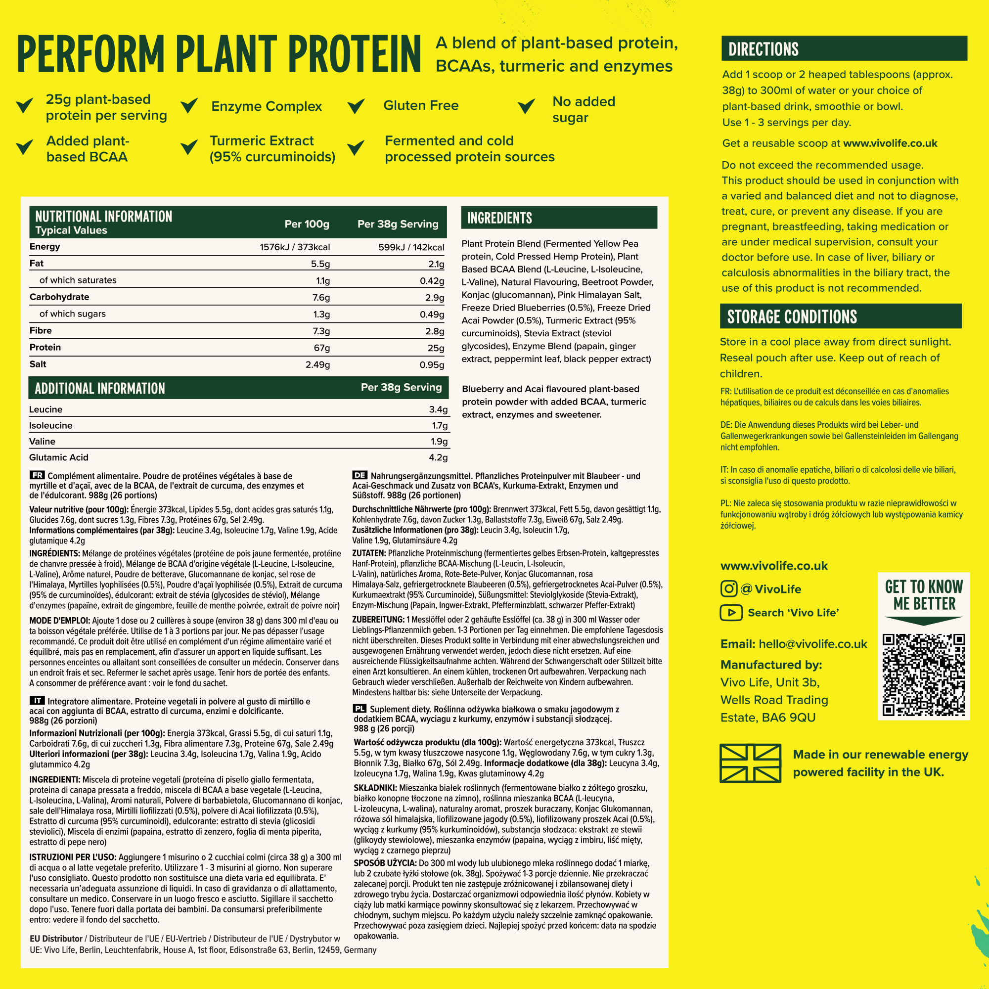 Vivo Life Performance Protein – Premium Quality Plant based Protein without the bloating | 25g of complete plant protein per serving | BCAA’s, turmeric & herbal enzymes | No artificial flavours or colours